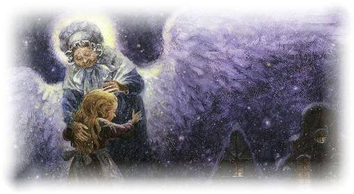 — Бабушка! — вскричала малютка: — Возьми меня с собой! Я знаю, что ты уйдёшь, как только погаснет спичка, уйдёшь, как тёплая печка, чудесный жареный гусь и большая, славная ёлка!